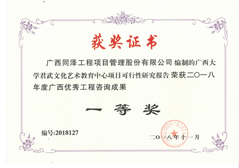 廣西大學(xué)君武文化藝術(shù)教育中心項(xiàng)目可行性研究報(bào)告榮獲2018年度廣西優(yōu)秀工程咨詢(xún)成果一等獎(jiǎng)