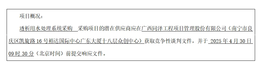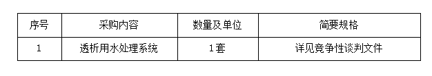 項(xiàng)目名稱:透析用水處理系統(tǒng)采購(gòu)